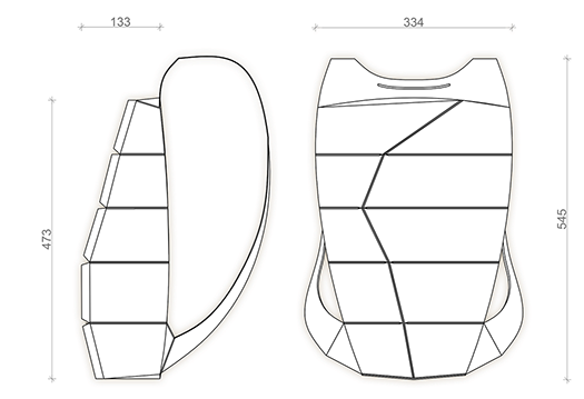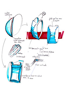 Sac a dos pour sport de glisse Conceptplans / croquisTravailler en accord avec les préceptes de Gaudi et le rapport qu’il entretient avec le corps - autant pendant la phase de conception que dans l’aspect formel-, tel était le cahier des charges.La notion d’équilibre est un motif récurrent dans les créations de l'architecte. A ce point s'ajoute dans sa formalisation un lien souvent étroit avec le squelette humain, m’amenant à travailler au plus près de la colonne vertébrale, un sac à dos. Protection, équilibre, articulation, poids.... Autant de problématiques pour lesquelles je suis allé chercher dans la nature et l’anatomie des pistes de réponse.InterventionDesign d'intérieur Dessin de motifs Prescription de mobilierPlansRecherchesRecherches