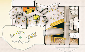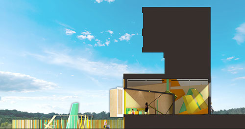 Jardin d'enfant ConceptplansLa population que nous trouvons à HEC est très diversifiée. Non seulement la moitié des étudiants sont étrangers, mais une grande partie provient également de province.Comment les nouveaux arrivant peuvent-ils s’intégrer à un si grand campus sans rien connaitre au territoire qui leur est mis à disposition?La démarche de ce projet est de favoriser une intégration progressive par le biais de groupes réduits, mais dans lesquels l’individu pourra trouver une place.Une fois que l'individu ayant pris ses marques, il sera plus facile pour lui de confronter à une masse plus grande crainte d’y disparaitre.InterventionCellules universitaire Espaces de travail Espaces de détente MobilierCoupeCoupeCoupePlan